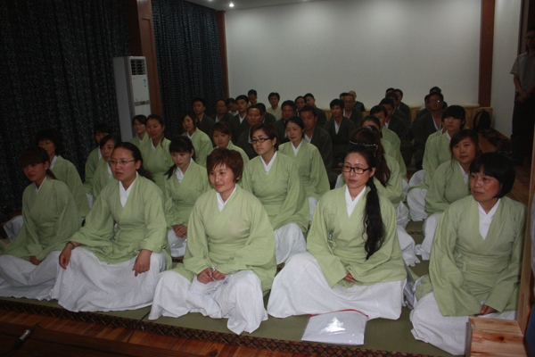 2012年6月26日晚,合肥市廬陽工業(yè)區(qū)合肥天方茶藝館內(nèi),偌大的教室里,50多位各個年齡層次的人都如古人般坐于蒲團上,面容沉靜,正全神聆聽對面一位同樣端坐于蒲團上的老師講課,老師講解的是《莊子》,“是故內(nèi)圣外王之道,暗而不明,郁而不發(fā)……”
