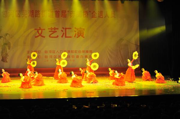 在9月29日下午,合肥市包河區(qū)蕪湖路街道在安徽歌舞劇院隆重舉辦的“喜迎十八大首屆‘赤闌橋’企退人員文藝匯演”上,天方藝術團應邀參加演出,舞蹈《太陽最紅》榮獲一等獎。