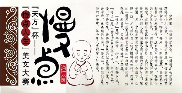為了推廣“慢點(diǎn)”這樣一種文化,同時(shí)提升“慢點(diǎn)”禪食的知名度,《傳奇·傳記文學(xué)選刊》雜志社聯(lián)手安徽天方茶業(yè)(集團(tuán))有限公司聯(lián)合舉辦“慢點(diǎn)人生”美文大賽。