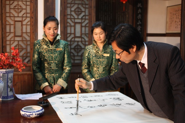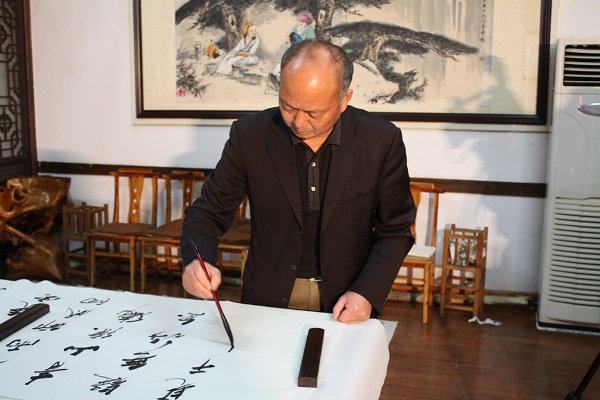 安徽電視臺(tái)科教頻道《我愛詩書畫》欄目組于2013年4月3日在安徽天方集團(tuán)大山富硒茶基地開機(jī),書法名家李光發(fā)、張業(yè)建,著名畫家呂士民和陶合民等安徽20余位書畫名家走進(jìn)天方,貼近天方。節(jié)目以天方茶藝館作為創(chuàng)作現(xiàn)場(chǎng),以弘揚(yáng)中華民族優(yōu)秀傳統(tǒng)文化和推介安徽詩書畫家為宗旨,從傳統(tǒng)唐詩宋詞入手,以茶詩書法展現(xiàn)“霧里青”的古典名茶魅力,以繪畫詮釋“富硒綠茶”的深厚底蘊(yùn)。以詩入畫,以書映詩,融合貫通,交相輝映。充分的反映出中華民族的文明和禮儀,其內(nèi)涵更是中國文化內(nèi)涵的一種具體表現(xiàn)。(洪林文/圖)