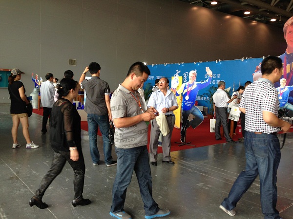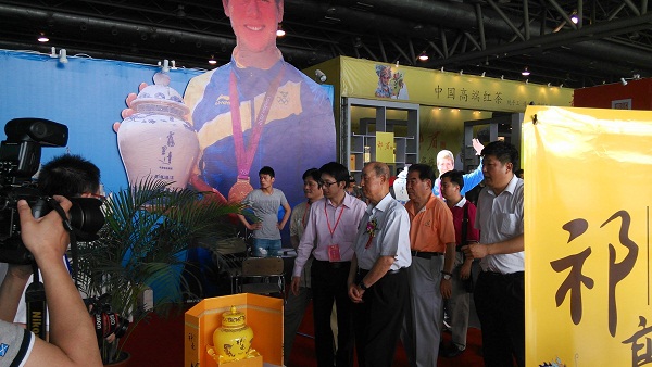 作為農(nóng)業(yè)產(chǎn)業(yè)化國家重點龍頭企業(yè),中國茶行業(yè)百強企業(yè)——安徽天方茶業(yè)集團180平米的開放式展區(qū)格外引入注目。放眼望去,碩大的背景墻上與現(xiàn)場四個瑞典奧運冠軍馬克思•薩米能手捧霧里青的肖像十分突出,引得眾多參觀者前來合影留念,而合影之余他們都會好奇,天方茶業(yè)現(xiàn)場的講解員都會跟他們講述“我要到中國去”的故事。