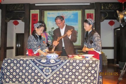 (擂茶茶藝表演中,客人與茶藝師互動(dòng))