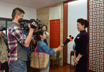 (天方藝術(shù)團(tuán)劉東紅團(tuán)長(zhǎng)在接受媒體采訪)