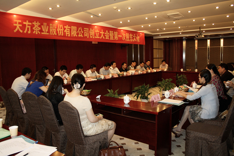 2014年8月29日,天方茶業(yè)股份有限公司創(chuàng)立大會(huì)暨第一次股東大會(huì)在石臺(tái)縣金誠(chéng)國(guó)際大酒店順利召開(kāi)。會(huì)議由安徽天方茶苑有限公司董事長(zhǎng)鄭孝和主持,石臺(tái)縣政協(xié)主席李文志、副縣長(zhǎng)李根杰出席會(huì)議,股份公司股東、股東代表、股東代理人、股份公司董事候選人、監(jiān)事候選人參加會(huì)議。
