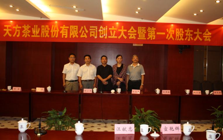 會(huì)上,鄭孝和董事長(zhǎng)向各位股東及與會(huì)人員匯報(bào)了天方發(fā)展歷程以及未來(lái)的發(fā)展規(guī)劃。李根杰副縣長(zhǎng)發(fā)表了講話(huà),肯定了天方過(guò)去的發(fā)展成績(jī)并且勉勵(lì)天方加快發(fā)展步伐,爭(zhēng)當(dāng)石臺(tái)縣首家上市企業(yè)。會(huì)議審議通過(guò)《天方茶業(yè)股份有限公司籌建工作報(bào)告》、《關(guān)于設(shè)立天方茶業(yè)股份有限公司的議案》、《天方茶業(yè)股份有限公司章程》等十四項(xiàng)議案,并且選舉產(chǎn)生第一屆董事會(huì)董事及第一屆監(jiān)事會(huì)監(jiān)事。鄭孝和、鄭小平、謝有紅、汪揚(yáng)、王焱五人當(dāng)選第一屆董事會(huì)董事,谷永康、曹子睿當(dāng)選為股東代表監(jiān)事,他們與職工代表監(jiān)事儲(chǔ)小芹共同成為第一屆監(jiān)事會(huì)監(jiān)事。
