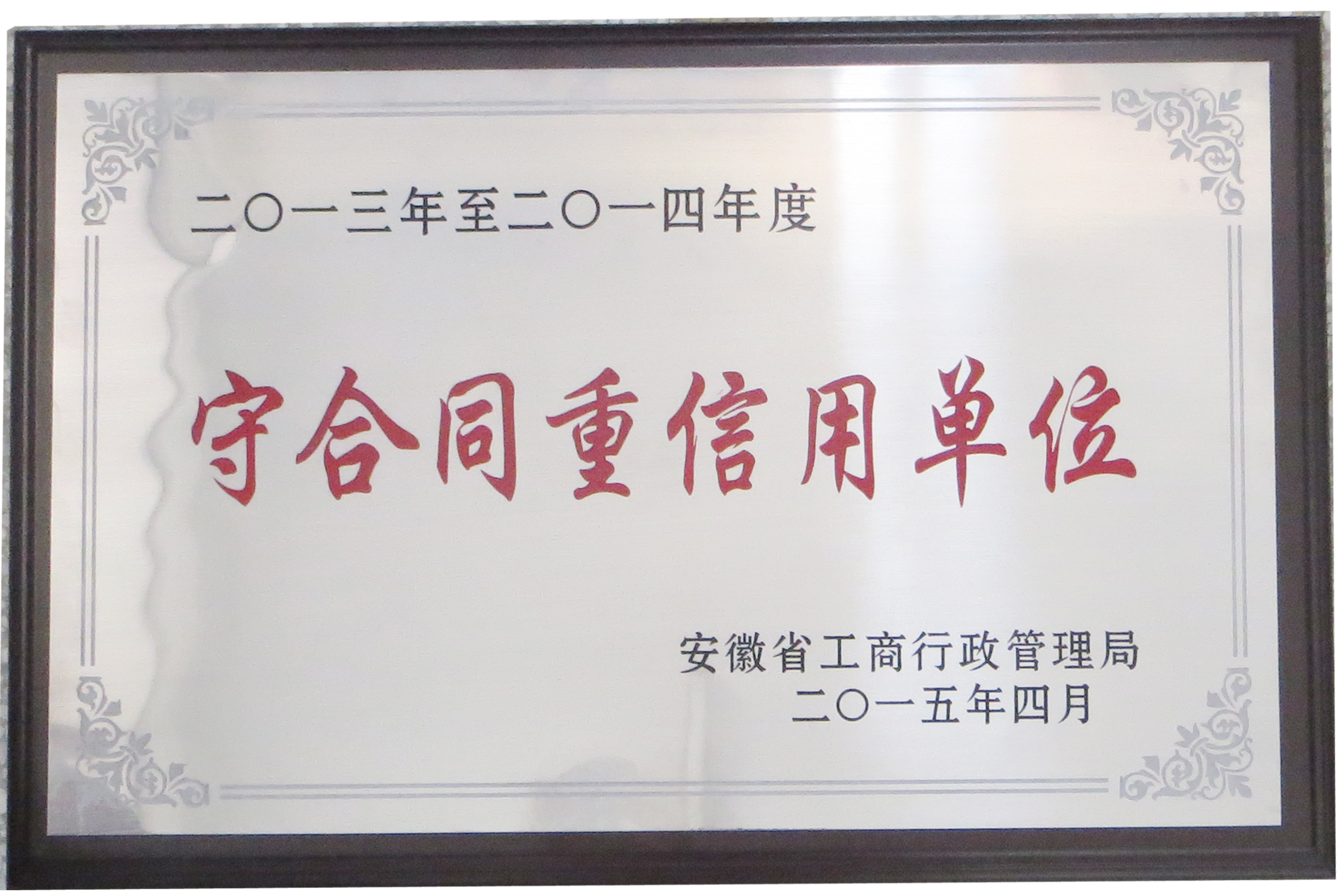 天方獲評2013-2014年度“守合同重信用單位”