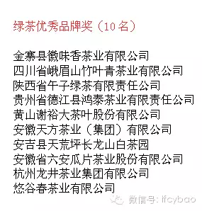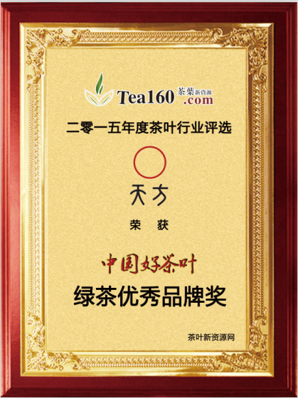 茶葉新資源每年一屆的“中國好茶葉”年度評(píng)選活動(dòng)于2016年3月8日落下帷幕,本次活動(dòng)參選品牌企業(yè)超過500家,評(píng)選獎(jiǎng)項(xiàng)涵蓋了除傳統(tǒng)六大茶系外,還包括陳皮普洱、花草茶、養(yǎng)生茶、茶城、茶博會(huì)等。 安徽天方茶業(yè)(集團(tuán))有限公司入選綠茶優(yōu)秀品牌獎(jiǎng)。