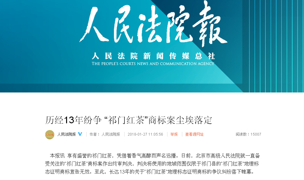 歷經(jīng)13年紛爭 “祁門紅茶”商標案塵埃落定
