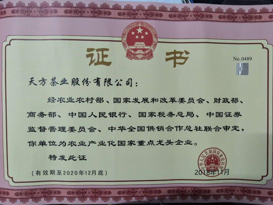 農(nóng)業(yè)農(nóng)村部公布了第八次監(jiān)測(cè)合格的農(nóng)業(yè)產(chǎn)業(yè)化國(guó)家重點(diǎn)龍頭企業(yè)名單的通知,天方茶業(yè)股份有限公司憑借一貫堅(jiān)持的嚴(yán)苛標(biāo)準(zhǔn)和對(duì)安全品質(zhì)的追求再一次通過(guò)監(jiān)測(cè)。