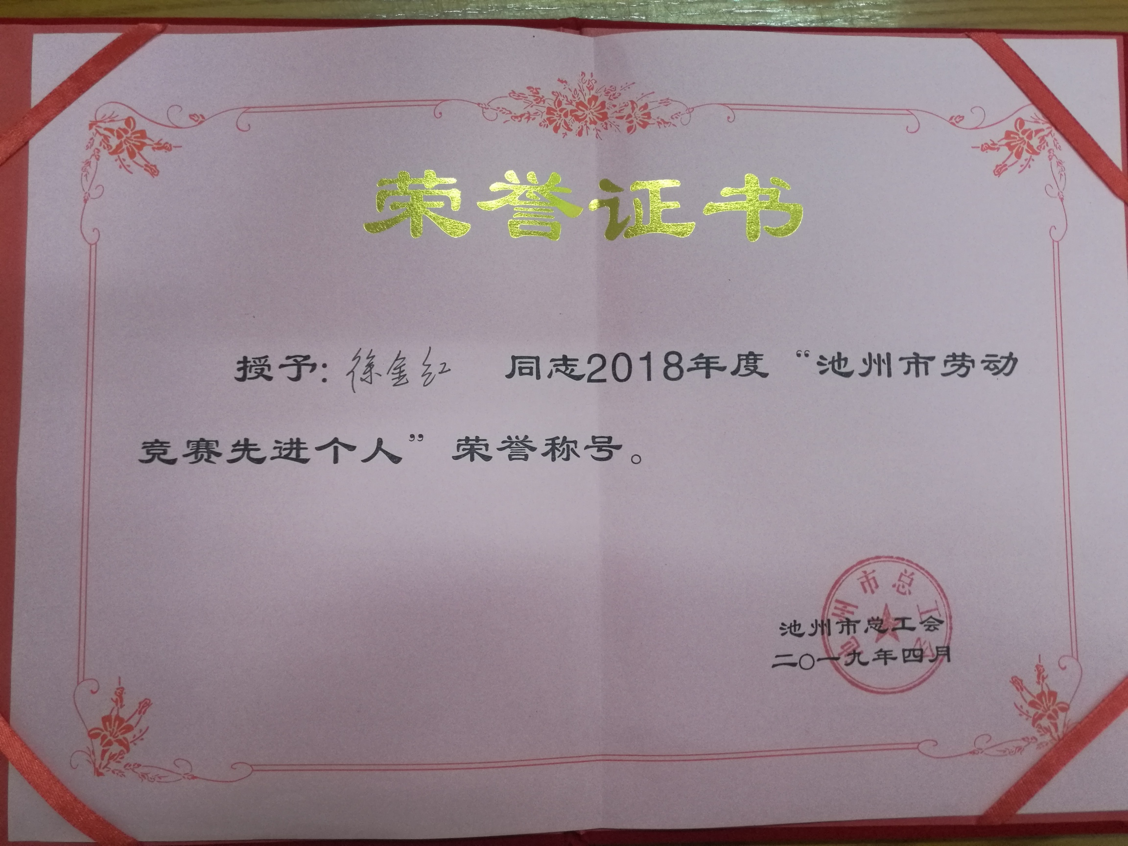 在剛剛過(guò)去的“五一”勞動(dòng)節(jié)前夕,天方茶業(yè)股份有限公司生產(chǎn)一部車間主任徐金紅獲頒“2018年度池州市五一勞動(dòng)獎(jiǎng)?wù)隆焙汀俺刂菔袆趧?dòng)競(jìng)賽先進(jìn)個(gè)人”。