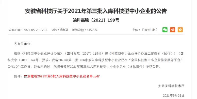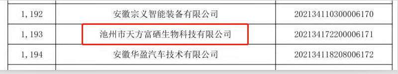 5月25日,安徽省科技廳發(fā)布2021年第三批入庫科技型中小企業(yè)名單,池州市天方富硒生物科技有限公司榜上有名。