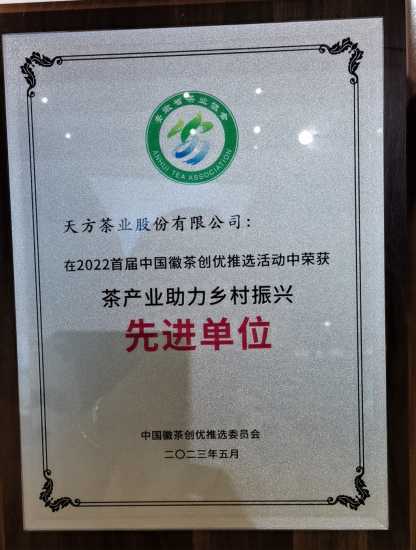 近日,經安徽省茶葉行業(yè)協(xié)會組織評選,2022中國徽茶創(chuàng)優(yōu)推選活動入選名單中,天方茶業(yè)股份有限公司入選茶產業(yè)助力鄉(xiāng)村振興先進單位。茶產業(yè)是天方茶業(yè)所在石臺縣的特色優(yōu)勢產業(yè)之一,是推動鄉(xiāng)村振興的重要支柱產業(yè),多年來,天方茶業(yè)扎根石臺,深耕茶產業(yè),堅持茶文化、茶產業(yè)、產科技統(tǒng)籌發(fā)展,是農業(yè)產業(yè)化國家重點龍頭企業(yè),連續(xù)17年獲評“中國茶業(yè)百強企業(yè)”。