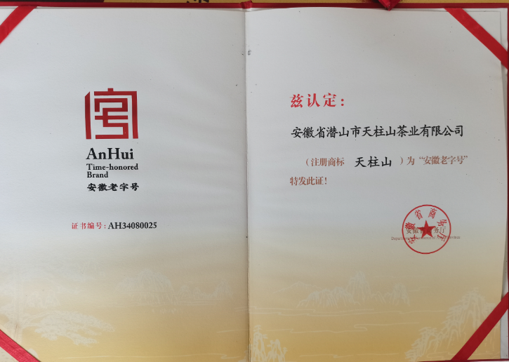 近日,省商務廳頒發(fā)新一批安徽老字號商標認定證書及牌匾,天方茶業(yè)股份有限公司“霧里青”商標及旗下子公司“天柱山”商標獲評“安徽老字號”。