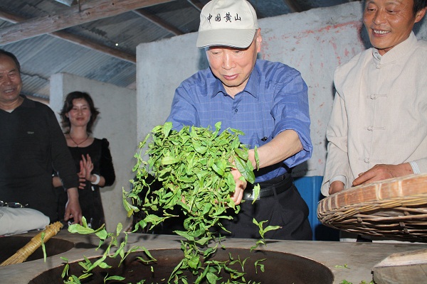 啟動儀式結(jié)束后,采風(fēng)團一行便離開石臺縣城,乘車前往位于仙寓鎮(zhèn)的天方度假村。28日下午采風(fēng)團參觀了富硒村、大山基地、制茶等,作家們在富硒茶園內(nèi)體驗采茶、賞茶園風(fēng)光,探訪山林里的流水瀑布,呼吸著富硒的空氣,叫人精氣神好不舒朗。在天方茶廠內(nèi),作家們在專業(yè)制茶師的演示下,親自體驗炒茶的過程。據(jù)了解,霧里青茶葉的生產(chǎn)工藝十分考究,不僅原料要選用高山云霧茶,而且整個生產(chǎn)過程還要全部按照深山傳統(tǒng)做茶的抖、帶、擠、甩、挺、拓、扣、抓、壓、磨十般手工工藝,先后經(jīng)過37道工序。做好成型后的霧里青,還要進行手工分撿,剔除葉片,只留一個青翠多毫的嫩芽,每500克霧里青成品茶有兩萬到兩萬五千個芽頭。